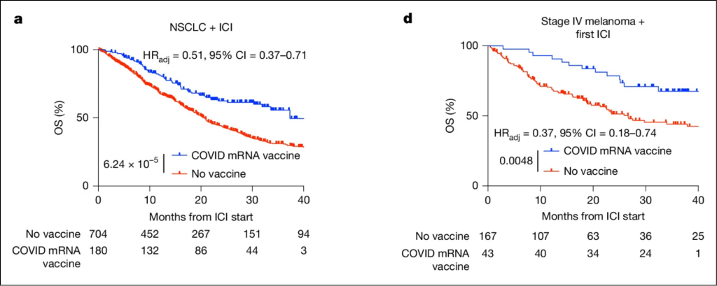 Les vaccins ARNm contre le Covid-19 améliorent la survie des patients porteurs d’un cancer du poumon ou d’un mélanome et traités par ICI
