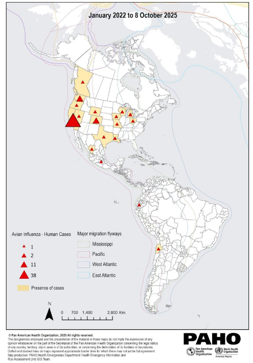 - PAHO (Pan American Health Organization) Epidemiological Update Avian Influenza A(H5N1) in the Americas Region – 15 October 2025 https://www.paho.org/en/documents/epidemiological-update-avian-influenza-ah5n1-americas-region-15-october-2025