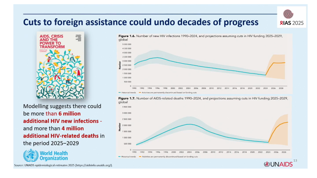 Mais au-delà des avancées scientifiques et des bonnes pratiques, un sujet a dominé les discussions : la menace que fait peser le désengagement américain, notamment via la réduction ou la suspension du financement du programme PEPFAR. Plusieurs pays d’Afrique subsaharienne dépendent de ces fonds à plus de 60 % pour leur riposte au VIH. L’ONUSIDA estime que l’arrêt du soutien pourrait entraîner 6 millions de nouvelles infections et 4 millions de décès supplémentaires d’ici à 2029.