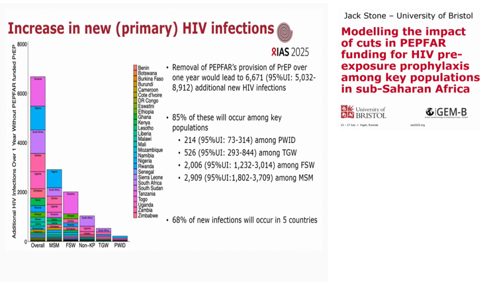 L’étude a également estimé l’impact d’un arrêt du financement de la PrEP via le PEPFAR : 700 000 personnes seront exclues de l’accès à la PrEP, et 6 671 infections supplémentaires apparaîtront dès l’année suivante, en majorité chez les populations-clés.