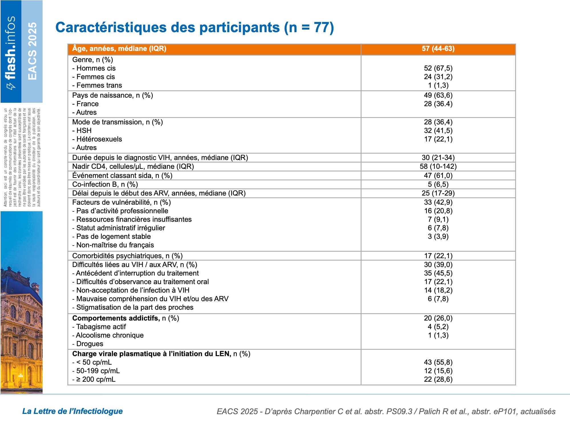Cet article a été précédemment publié dans le Flash-Infos de la Lettre de l’infectiologue d’Edimark consacré à l’EACS. Nous le reproduisons ici avec leur aimable autorisation.